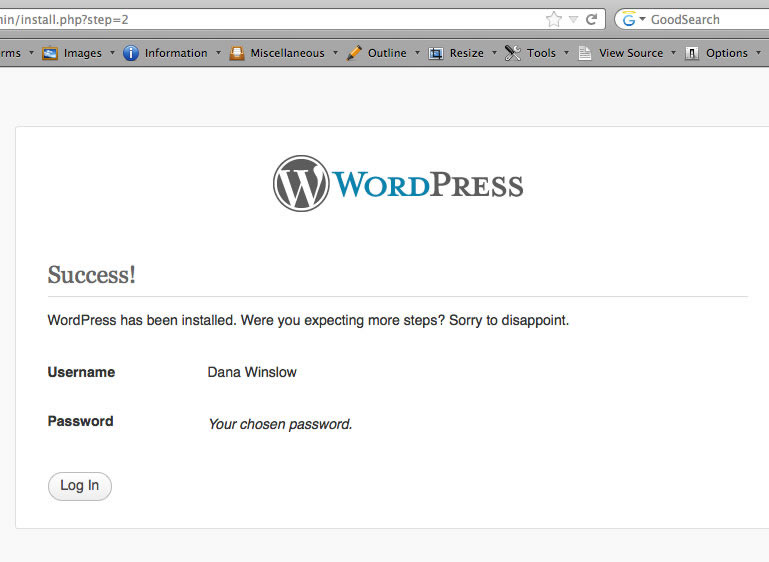 For those of you who prefer WordPress to Drupal, installation onto your new local test server is not much different. Again, you'll need a database, complete with username, password and privileges. You'll also need the latest version of WordPress available from the wordpress.org web site.