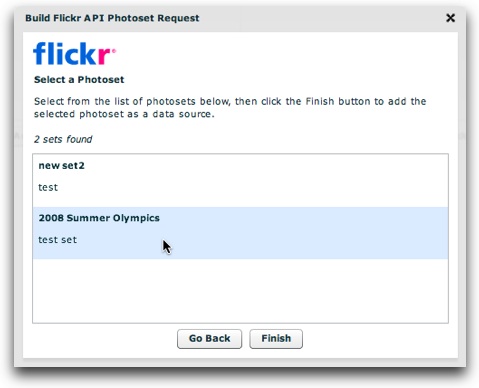 If you want to load from a different account, click the Go Back button. Otherwise, click the Finish button to exit the window and add the photoset: