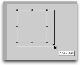 To resize an element, click it once to select it.    On each corner (and on the middle of each side), a resize handle will appear.    When you hover over one of these handles, a resize cursor will appear.    If you click and drag, the element size will be updated as appropriate.    A tooltip is shown while dragging to indicate the new effective size of the element: