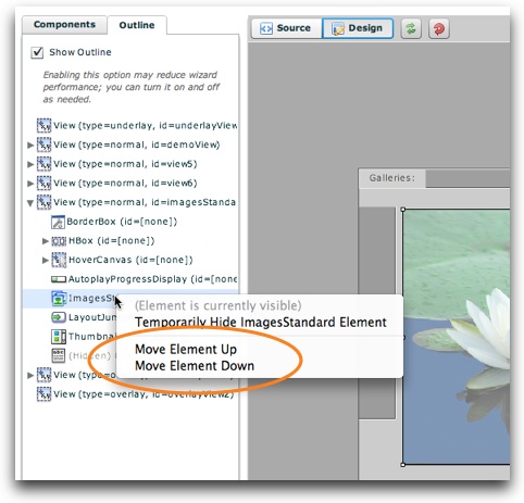 You can also change the visual stacking order of elements by right-clicking (Cmd+clicking) on an element in the tree and selecting Move Item Up or Move Item Down: